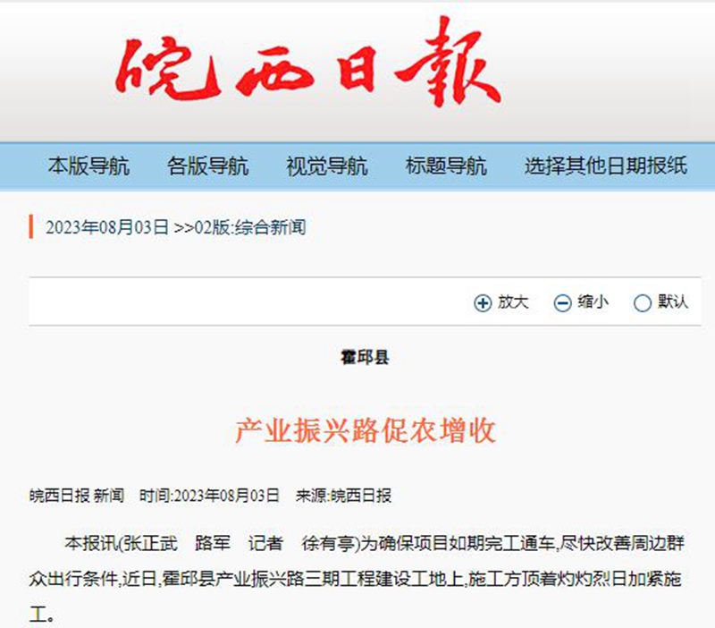 【名媒聚焦】皖西日報:安徽路橋產(chǎn)業(yè)振興路促農(nóng)增收