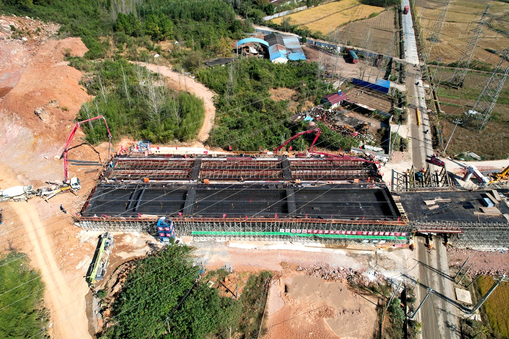 工程建設(shè)制勝在關(guān)鍵點,項目部始終堅持把關(guān)鍵節(jié)點工程攻堅作為“頭號工程”。水東四號橋位于象山腳下,橫跨鄉(xiāng)道施工,施工組織難度大,安全風(fēng)險高。項目積極組織工作專班,通過優(yōu)化方案、細化分工、倒排工期和現(xiàn)場監(jiān)督等措施,并積極對接當(dāng)?shù)卣陀嘘P(guān)電力部門,多番實地考察、測量,保障施工過程的有序性、高效性和安全性。2023年11月8日上午,水東四號橋首件現(xiàn)澆梁順利澆筑完成,標志著項目關(guān)鍵施工節(jié)點取得突破性進展。