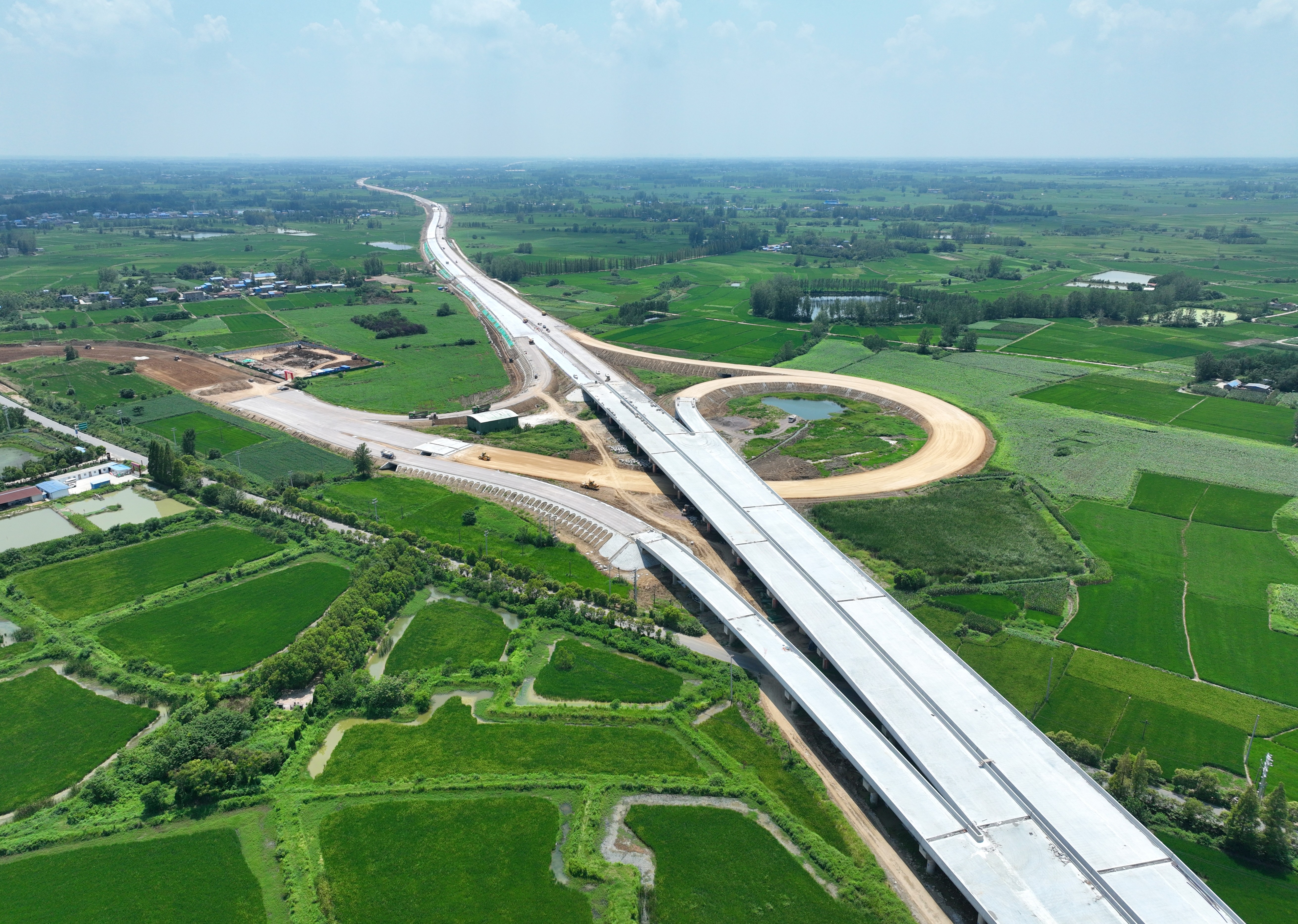 面對軟基、高填方、涉路協(xié)調難等多重挑戰(zhàn),項目優(yōu)化架梁方案,采用“動態(tài)交通導改+分時段施工”模式,最大限度減少對地方路網的通行影響,兩座互通立交已于6月底實現(xiàn)貫通。目前,項目控制性工程路基工程主線施工基本結束,正迅速推進防排水等附屬工程施工,已完成合同工程量96%,朝著9月交工驗收目標全速沖刺。