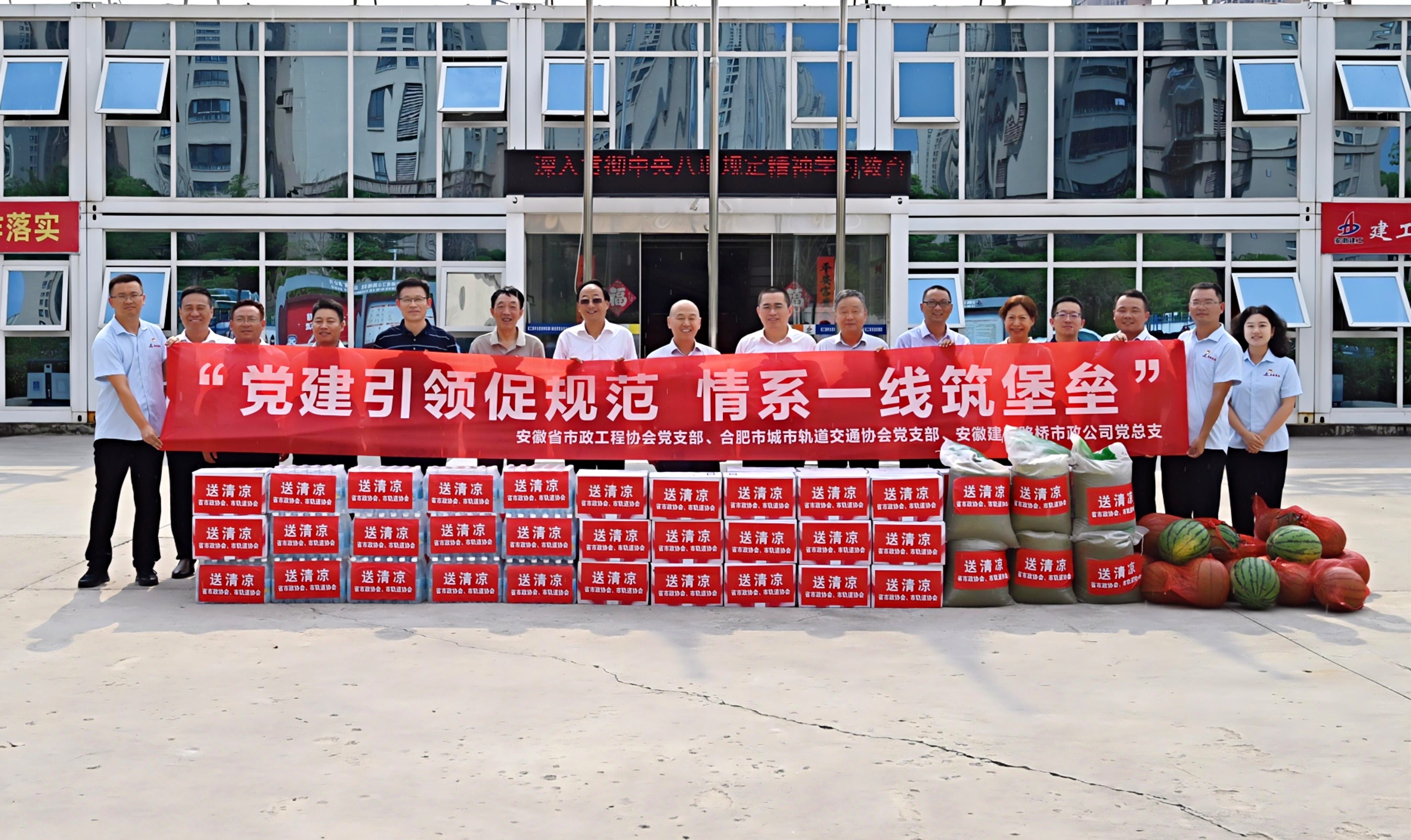 8月5號下午,安徽省市政工程協(xié)會黨支部書記、會長王斌,合肥市城市軌道交通協(xié)會黨支部書記、會長汪志成一行到合肥新橋機(jī)場S1線先行段項目開展“送清涼”慰問,向高溫下堅守崗位的項目職工致以誠摯的問候和深切的關(guān)懷,囑咐大家要科學(xué)統(tǒng)籌施工安排,落實防暑措施,在確保施工安全和工程質(zhì)量的前提下,共同為如期完成目標(biāo)任務(wù)努力。