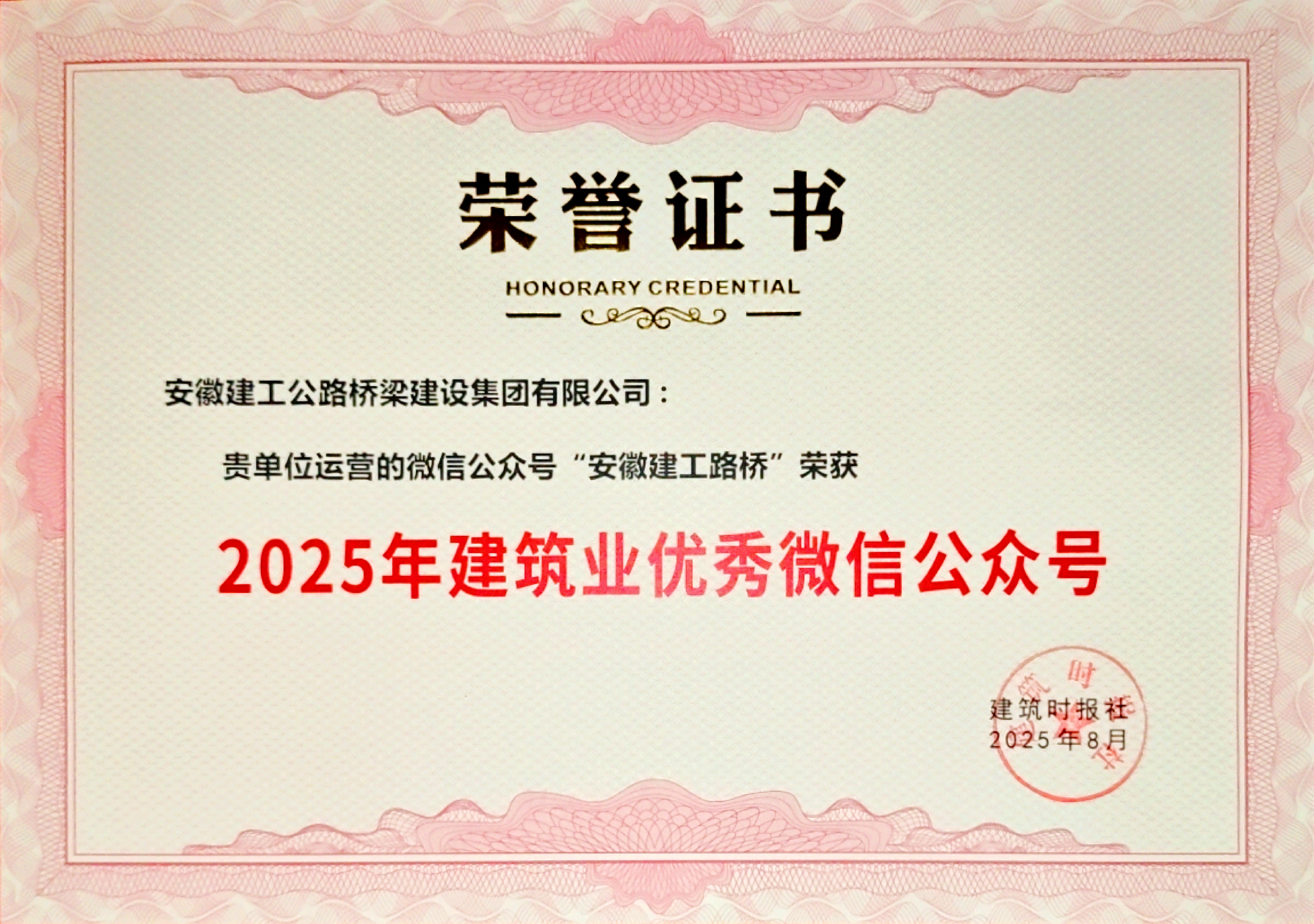 8月7日,2025年建筑業(yè)優(yōu)秀微信公眾號(hào)名單公布,公司微信公眾號(hào)“安徽建工路橋”再次獲此殊榮,連續(xù)4年登榜。