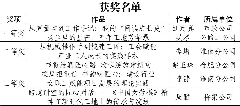 近日,集團為慶祝中華全國總工會成立100周年,組織開展了工會工作主題征文活動。公司報送的6篇文章從百余篇作品中脫穎而出,取得優(yōu)異成績,榮獲一等獎2項、二等獎1項、三等獎3項。