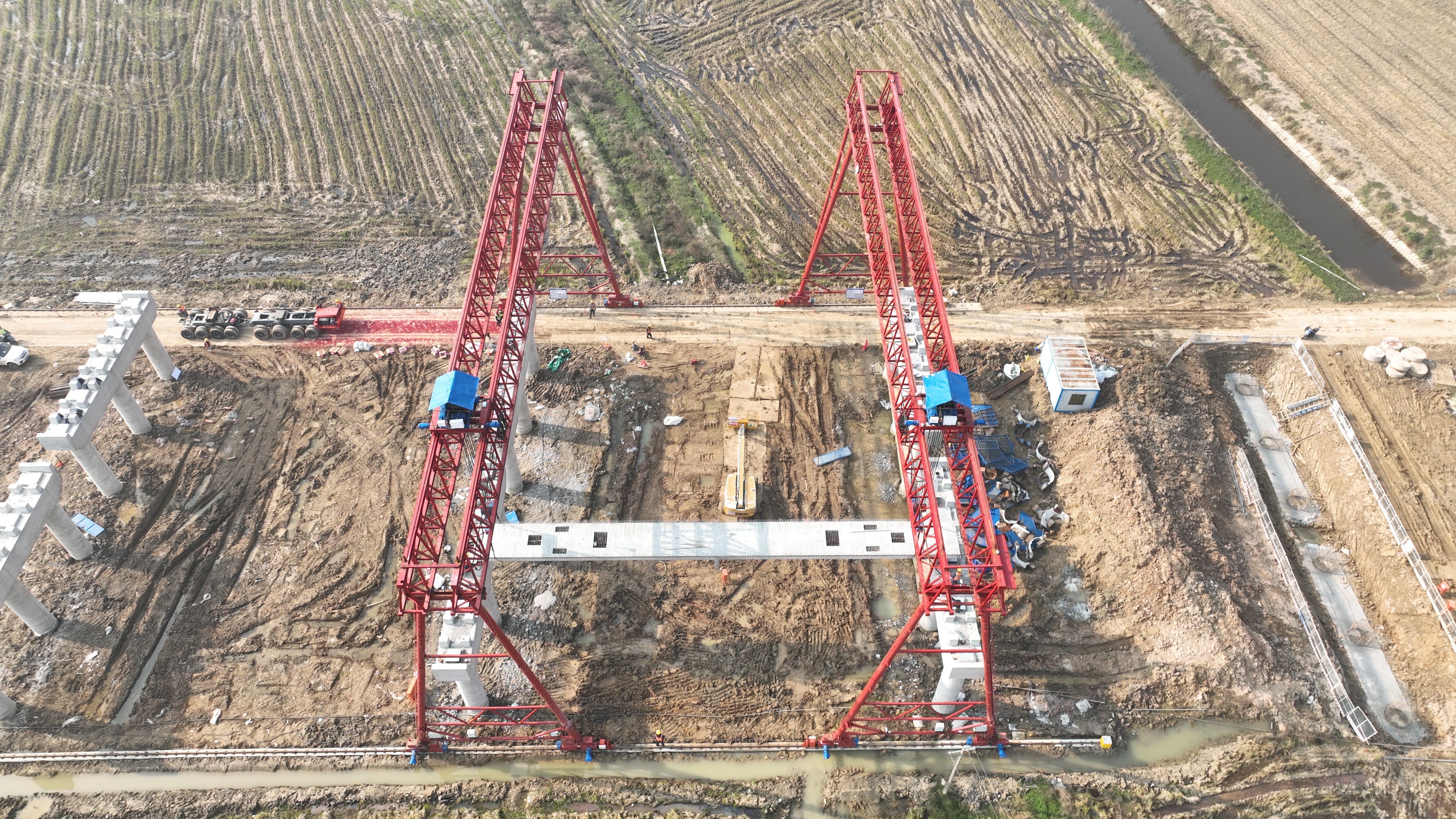 作為銅商高速關(guān)鍵控制性工程,杭埠河特大橋全長約5.63公里,橋梁架設(shè)質(zhì)量與進度直接關(guān)系到項目整體通車節(jié)點。本次北岸架設(shè)作業(yè)延續(xù)了南岸成熟施工工藝,采用兩臺120噸龍門吊協(xié)同提梁上橋。北岸架設(shè)的順利啟動,拓展了項目核心作業(yè)面,形成“南北呼應(yīng)、雙向提速”的施工態(tài)勢,將進一步推動整體工程進度。