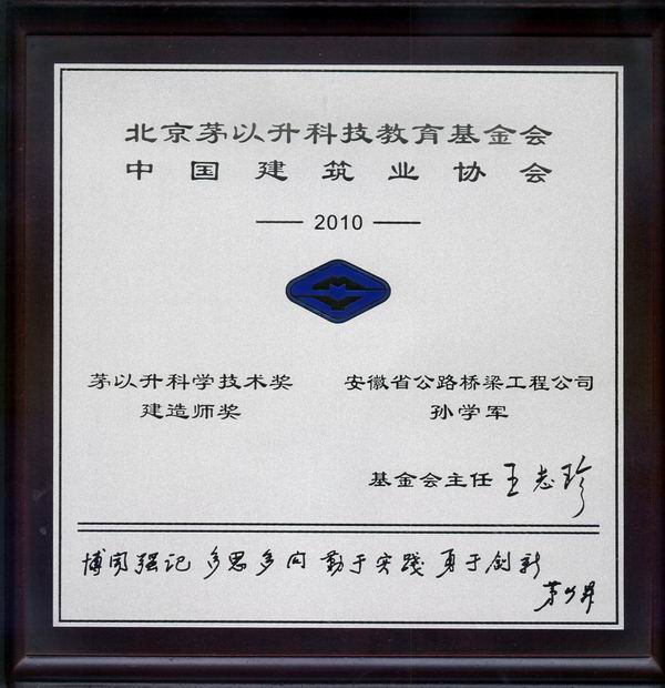 公司副總經(jīng)理孫學(xué)軍榮獲茅以升科學(xué)技術(shù)獎(jiǎng)
