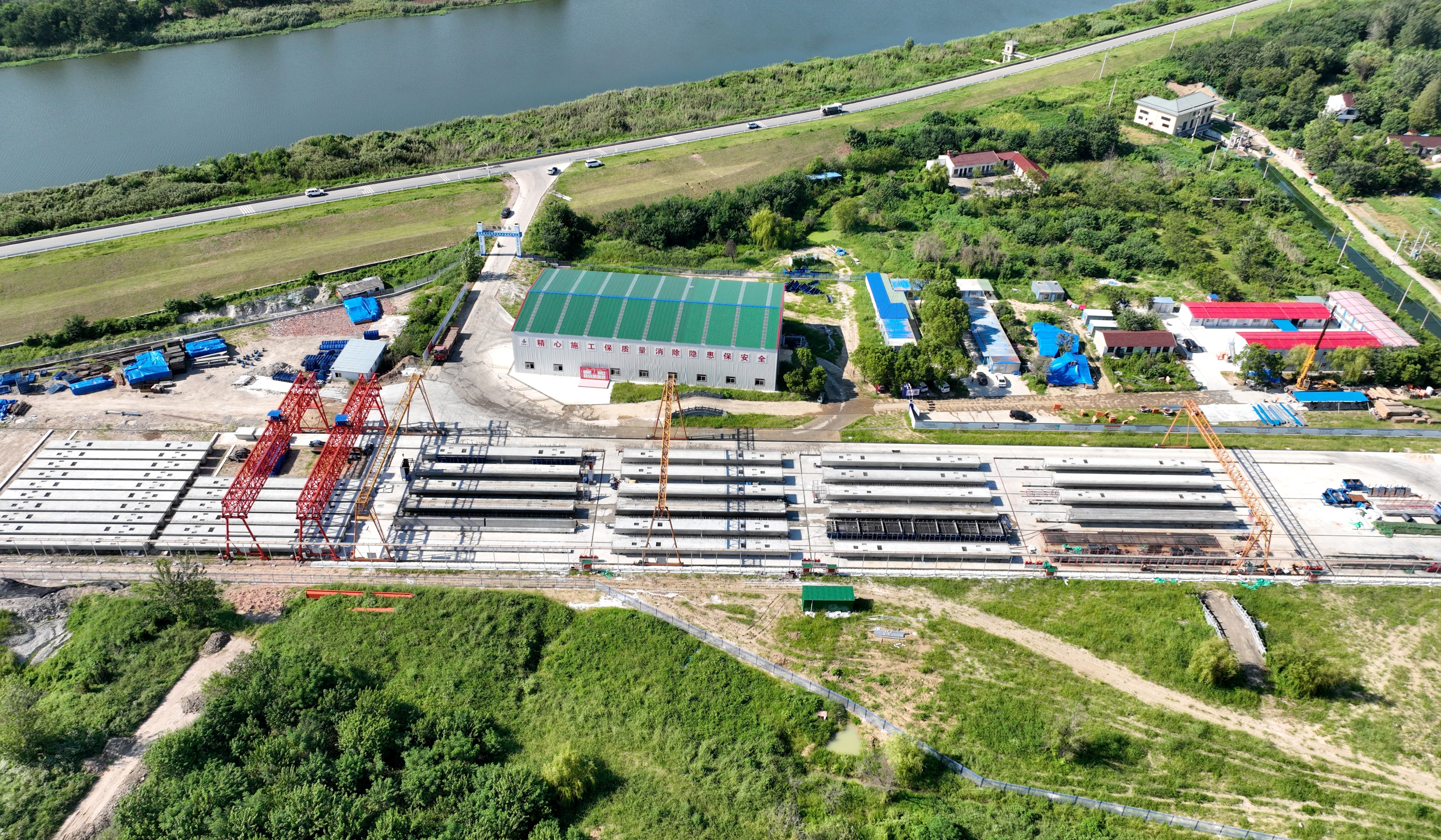 預(yù)制梁場作為橋梁架設(shè)的“后方糧倉”,同樣按下“加速鍵”。項目規(guī)劃的2處標(biāo)準(zhǔn)化預(yù)制梁場,承擔(dān)著全線2130片箱梁的預(yù)制任務(wù),其建設(shè)進(jìn)度與制梁效率直接關(guān)系橋梁架設(shè)的連續(xù)性。其中,1#梁場(占地40畝)擔(dān)負(fù)杭埠河特大橋南岸箱梁預(yù)制工作,目前該梁場生產(chǎn)線進(jìn)入批量生產(chǎn)階段,已完成42片箱梁澆筑;規(guī)模更大的2#梁場(占地70畝)擔(dān)負(fù)杭埠河特大橋北岸、跨三河支線特大橋及東一支渠大橋共1140片箱梁的預(yù)制工作,目前整體建設(shè)進(jìn)入收尾階段,預(yù)計近期可投入使用,屆時兩處梁場將形成“南北呼應(yīng)、同步制梁”的產(chǎn)能格局。