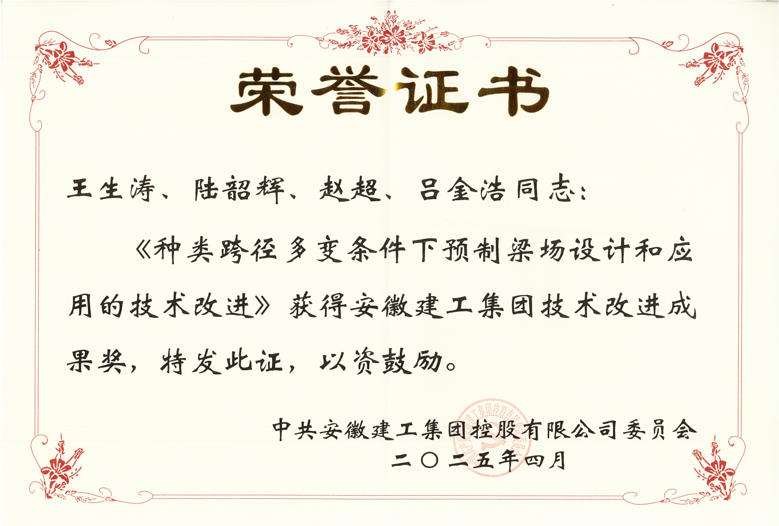 在預(yù)制梁施工中,項目涉及8種不同跨徑的箱梁生產(chǎn)。按照傳統(tǒng)工藝,需對應(yīng)建設(shè)8種專用臺座,不僅占用大量場地,還需投入額外成本,且臺座僅能適配單一跨徑箱梁,資源利用率極低。項目部技術(shù)團(tuán)隊通過對比不同跨徑箱梁的結(jié)構(gòu)參數(shù)、受力特點,最終確定建設(shè)25米、40米兩種通用臺座。通過靈活調(diào)整模板支撐結(jié)構(gòu)、優(yōu)化鋼筋綁扎流程,使兩種臺座可完全適配8種跨徑箱梁的預(yù)制需求。此舉減少了6種專用臺座的建設(shè)投入,還節(jié)省施工用地約9.8畝,縮短工期15天,相關(guān)技術(shù)成果《種類跨徑多變條件下預(yù)制梁場設(shè)計和應(yīng)用的技術(shù)改進(jìn)》還榮獲集團(tuán)技術(shù)改進(jìn)獎及安徽省重大合理化建議獎。