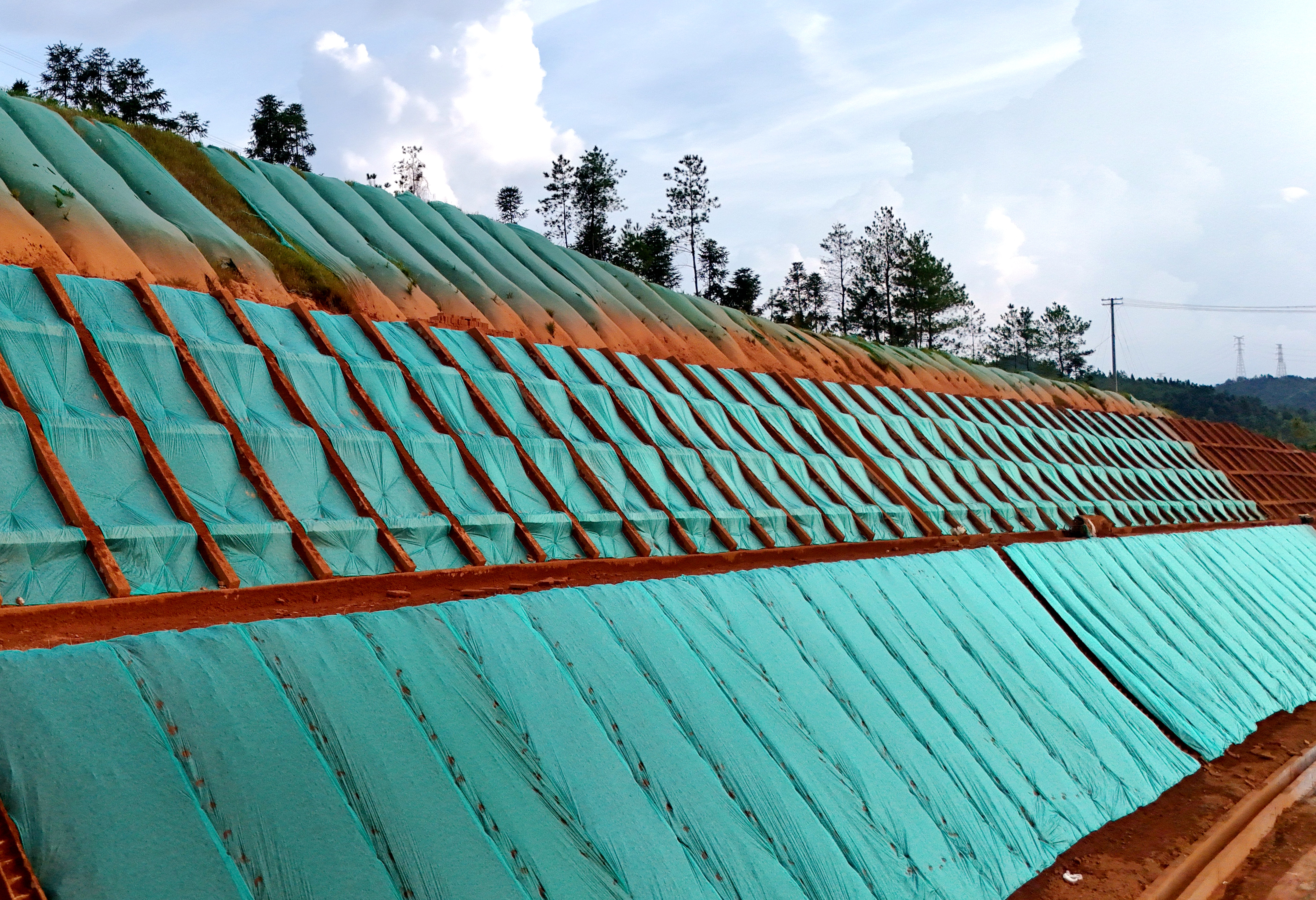 面對土壤本身易侵蝕、穩(wěn)定性差的巨大挑戰(zhàn),項目部提出了“預(yù)防為主、防治結(jié)合、全程管控”的施工思路。在滿足穩(wěn)定性的前提下控制坡率,有效降低坡面流速,減少侵蝕;同時采取“開挖一段、防護(hù)一段、綠化一段”的分區(qū)作業(yè)、分段施工方式,避免大面積同時開挖,縮短土壤裸露的時間;并針對紅壤酸性強(qiáng)、貧瘠、直接綠化困難的特點(diǎn),充分發(fā)揮項目技術(shù)與設(shè)備優(yōu)勢,選取耐貧瘠、耐酸性、固土能力強(qiáng)、根系發(fā)達(dá)的本地草種,將種子、肥料、土壤改良劑、粘合劑、保水劑等與水混合,成功改良坡面土壤。通過該施工方法,項目降低綜合成本18%,水土流失減少70%,實現(xiàn)了降本增效與生態(tài)環(huán)保的多重效益。